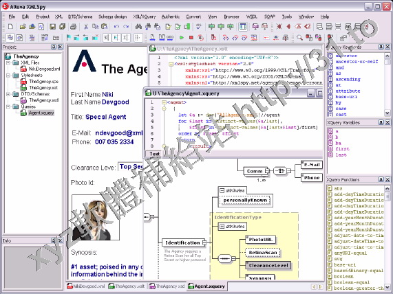 XMLSpy是所有XML編輯器中做得非常好的一個軟體,支援WYSWYG。支援Unicode、多字